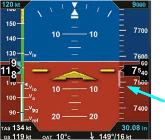 What is the function of the magenta line overlying the altitude tape (below)? (P. 4.22)