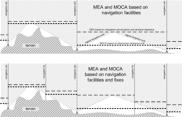 In contrast, the MEA provides an altitude above sea level between specified fixes on airways or air routes that assures acceptable navigational coverage, and which meets the IFR obstruction clearance requirements.2 Accordingly, MEA will always be higher than MOCA.